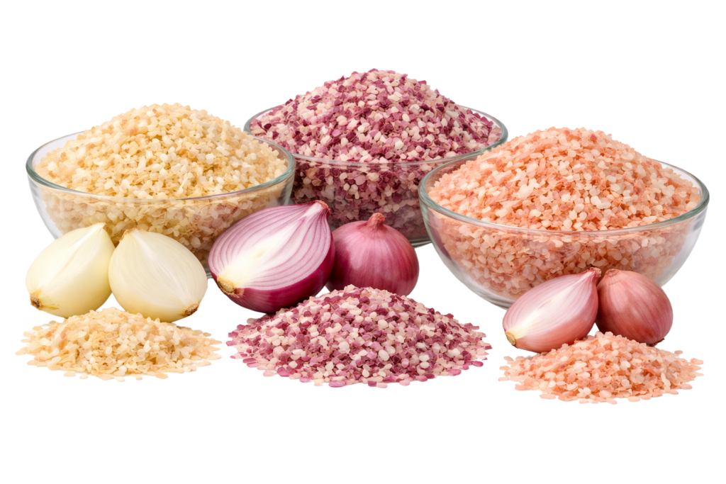 Radhe Exim offers high-quality dehydrated onion granules available in white, red, and pink onion varieties, processed using advanced dehydration techniques to retain natural flavor, aroma, and nutritional value. These granules are widely used in food processing, seasoning blends, ready-to-eat meals, soups, sauces, and snack manufacturing.