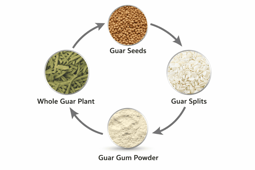 It is primarily cultivated in arid and semi-arid regions of India, making the country the largest producer and exporter of guar gum in the world. The guar seeds are processed to extract guar gum, which is then refined into a fine powder used across multiple industries.