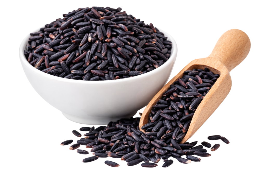 Black rice is a highly nutritious rice variety known for its dark color and high antioxidant content. It is popular in specialty food markets and healthy diet products.